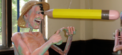 Given the absurdity of the world we live in I have taken on as my singular task that of providing a bit of irreverence through whimsically sophomoric to topically edgy sculptures. I expect that when you view my pieces you might think that this guy has a pretty self-indulgent sense of humor. Yeah that, and being in a classroom with 12 year olds for 35 years is not a conduit to high art, just good preparation for a little zaniness.